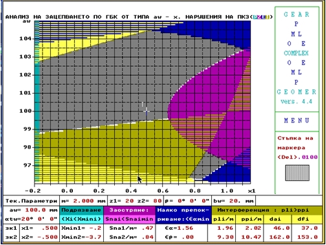 - Построяване на ГБК с частичен или пълен анализ по граничните области. Известно е, че в по-сложните случаи при проектиране се търсят компромисни решения. Възможно е в хода на търсенето на предавки с подходящи за случая параметри конструкторът да бъде "изкушаван" да приеме проектни стойности от областта на допустимите решения близки до граничните. Предлаганата информация подпомага преценката му за поемания риск, произтичащ от евентуални технологични грешки при нарязването на зъбните колела, изпълнението на корпусите, валовете и др.