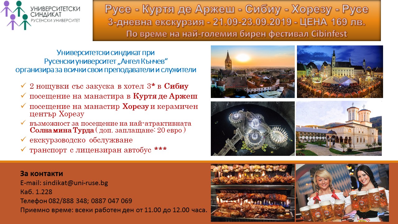 - 21 - 23 септември - екскурзия: Русе - Куртя де Аржеш - Сибиу - Хорезу - Русе