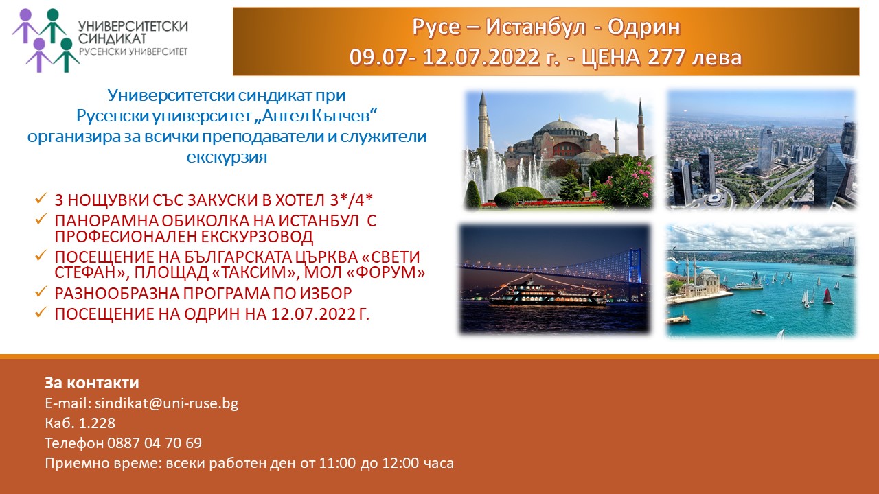 - 9 - 12 юли 2022 - екскурзия: Русе - Истанбул - Одрин