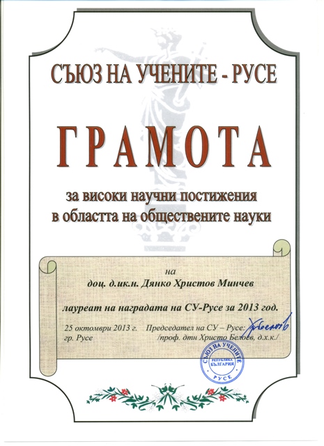 На 15.3.2013 г. от 10:00 в зала 2Г.404 ще се проведе заседание на научно жури по защитата на докторска дисертация за присъждане на научната степен "Доктор на икономическите науки" на доц. д-р Дянко Христов Минчев, кат. Икономика, Русенски университет "Ангел Кънчев"