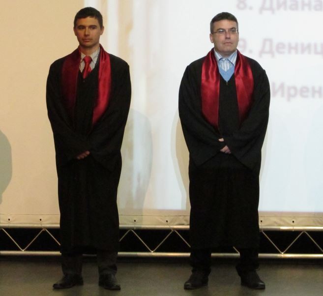 Връчване на дипломи на тържествено събрание на университета на колеги от МТФ