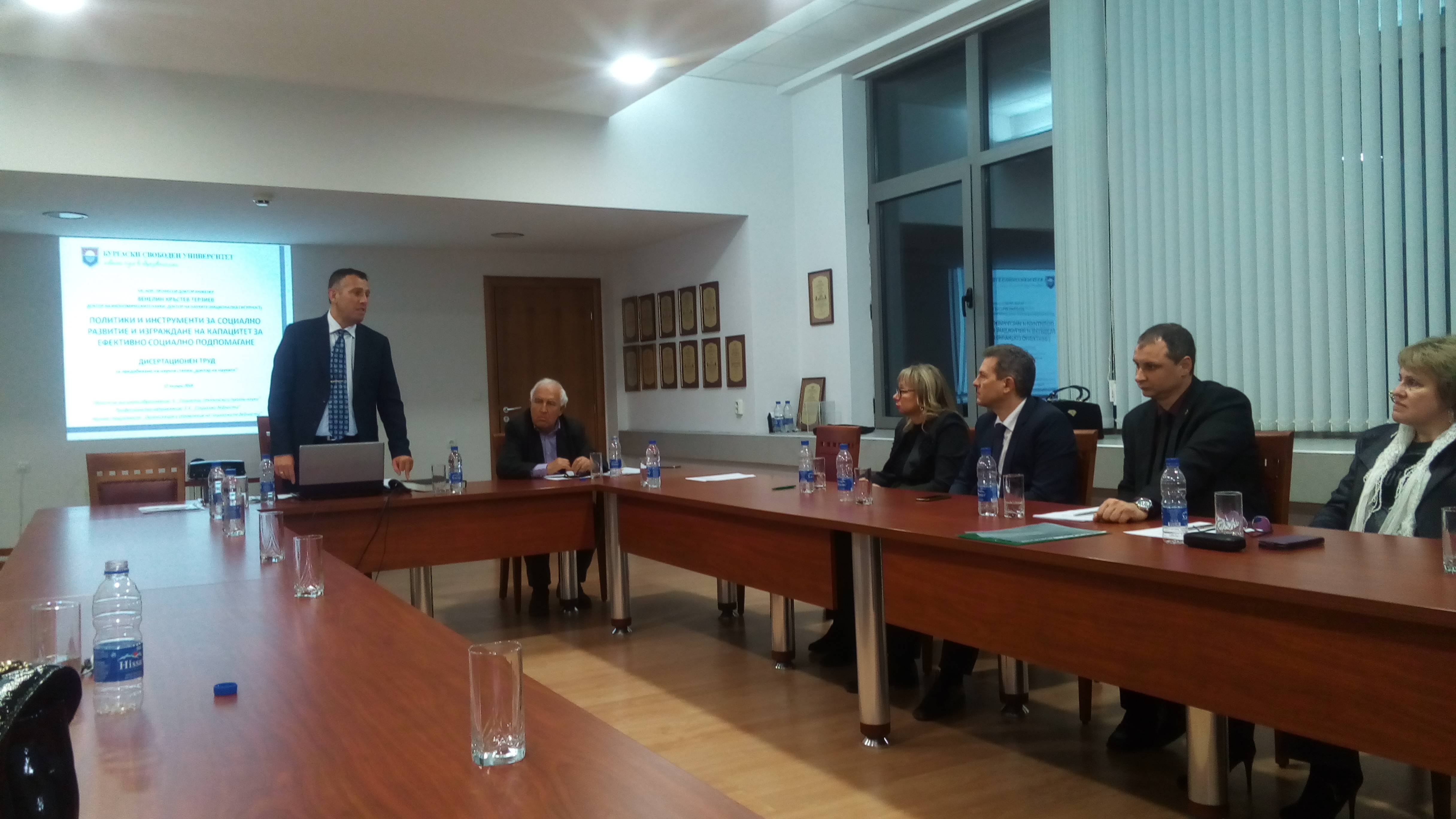 Дисертацията си на тема „Предизвикателства пред социалното програмиране в контекста на насърчаването на социалната активност и регулирането на социалното развитие чрез активни политики”, проф. Терзиев защити в катедра „Застраховане и социално дело” към факултет „Финанси” на Свищовската академия.