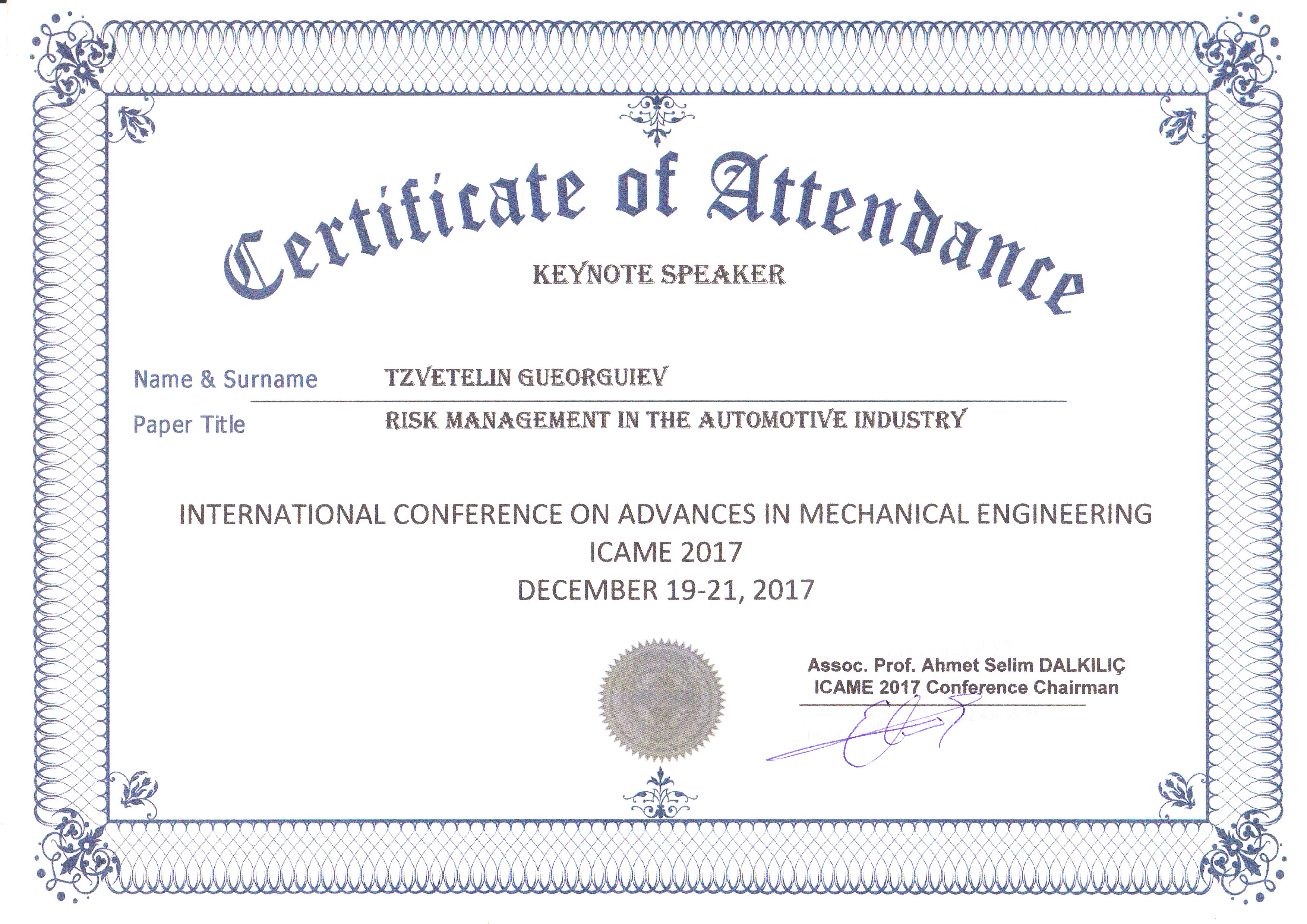 Гл. ас. д-р Ц. Георгиев със сертификат от конференцията IITEE