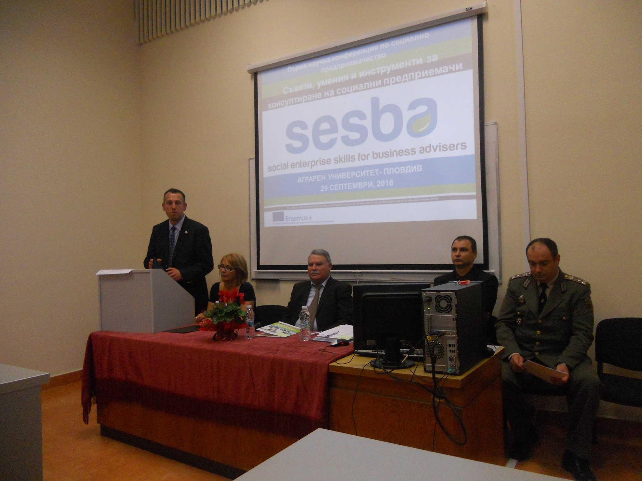 Първата научна конференция по социално предприемачество на тема „Съвети, умения и инструменти за социални предприемачи“ се проведе на 29 септември 2016 в Аграрен университет – гр. Пловдив и бе открита от ректора на университета проф. д-р Христина Янчева. Конференцията е организирана в рамките на проект „Умения за бизнес консултанти в областта на социалното предприемачество” (Social enterprise skills for business advisors – SESBA), изпълняван по дейността „Стратегически партньорства“ на Европейска програма за образование, обучение, младеж и спорт „Еразъм+“.