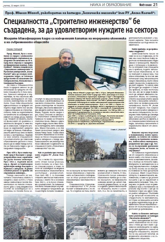 Още за висшето образование и науката - това беше темата на интервюто на декана на МТФ на РУ "Ангел Кънчев" пред БНТ 2. Цялото интервю можете да видите тук (от 7.52 до 13.22).