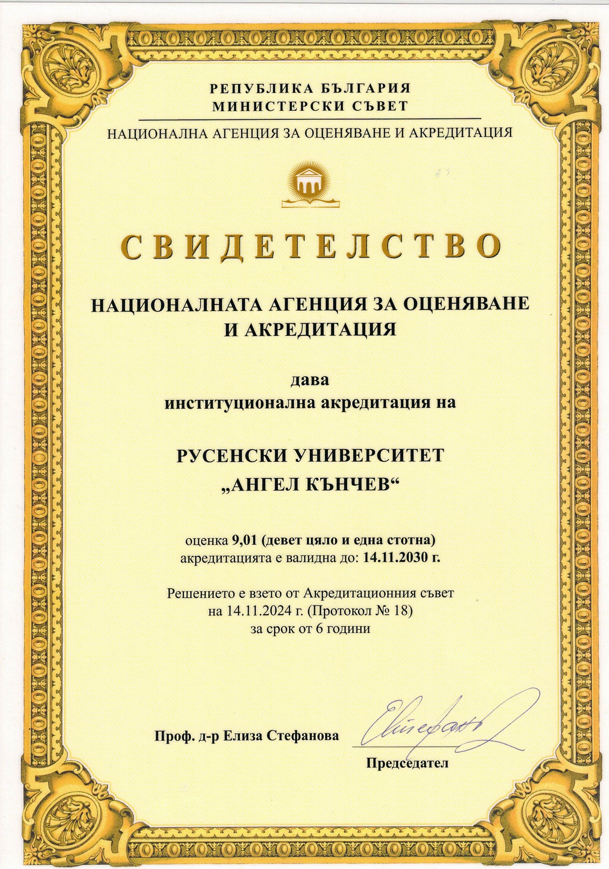 THE UNIVERSITY OF RUSE RECEIVED MAXIMUM ASSESSMENT FOR ITS WORK FROM THE MINISTRY OF EDUCATION AND SCIENCE