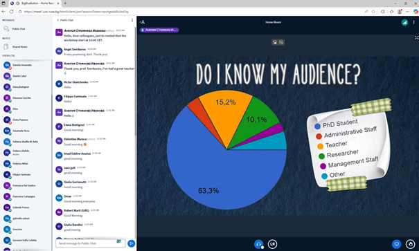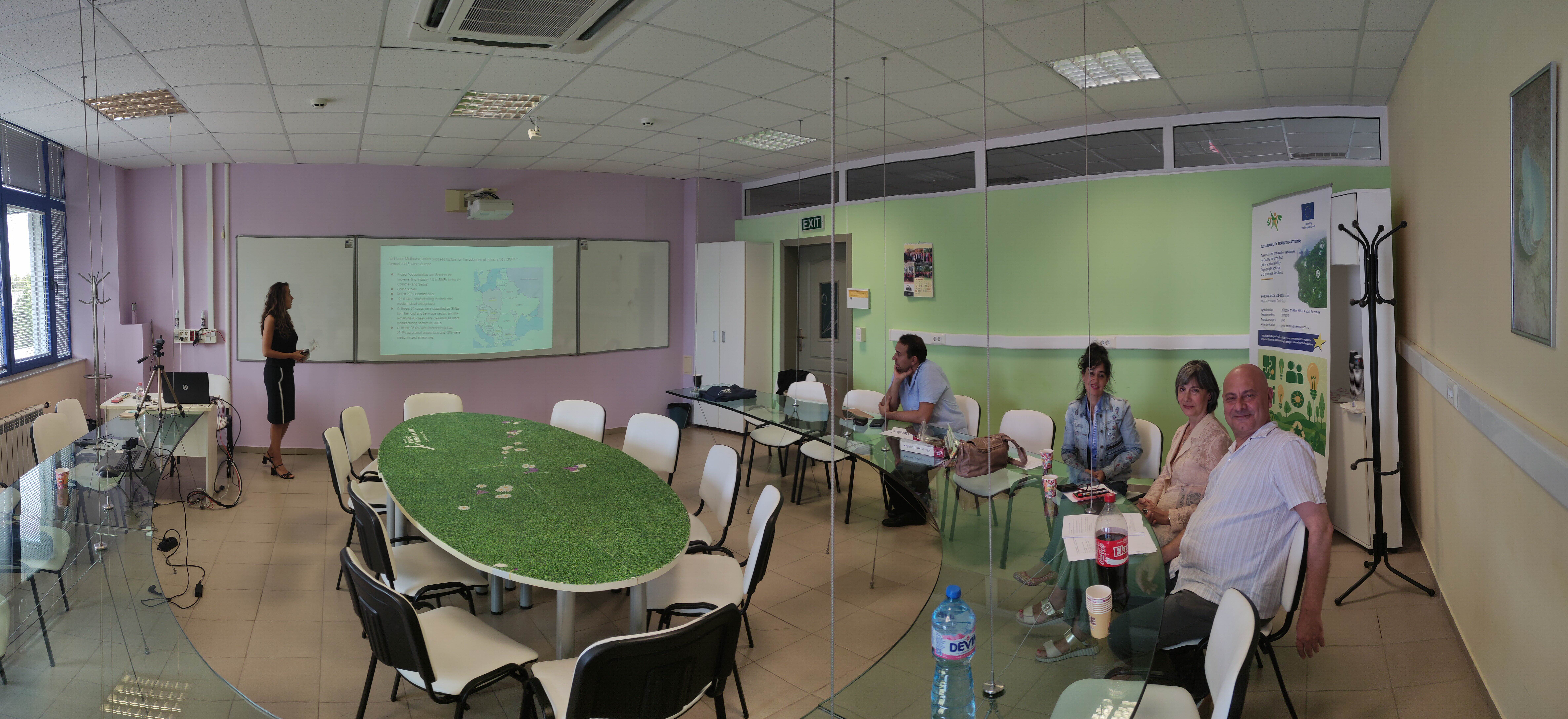 Participants in the meeting, on behalf of the university of Ruse were : Associate Professor Galina Ivanova, PhD - Deputy Rector for International Cooperation, Associate Professor Tsvetelina Harakchiyska , PhD - Deputy Dean of the Faculty of Natural Sciences and Education, Professor Ivan Beloev, PhD - head of the Continuing Education Centre, Professor Juliana Popova, PhD, Associate Professor Orlin Petrov , PhD - Head of the Academic Staff Development Department , Doctor Victoria Ivanova - Director of the University Library and Professor Valentina Voynohovska, PhD - responsible for the tasks from the work program for the implementation of the project.