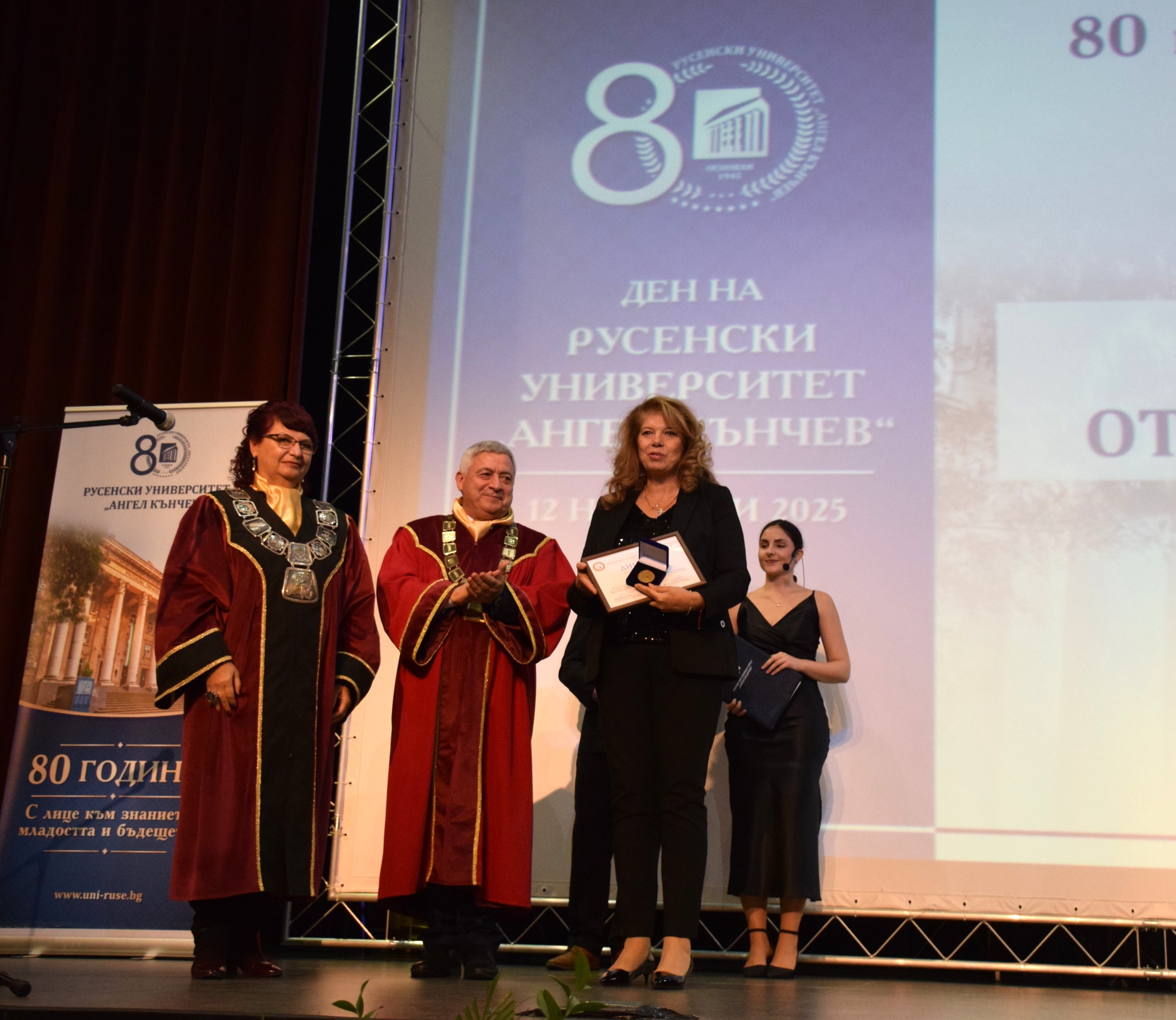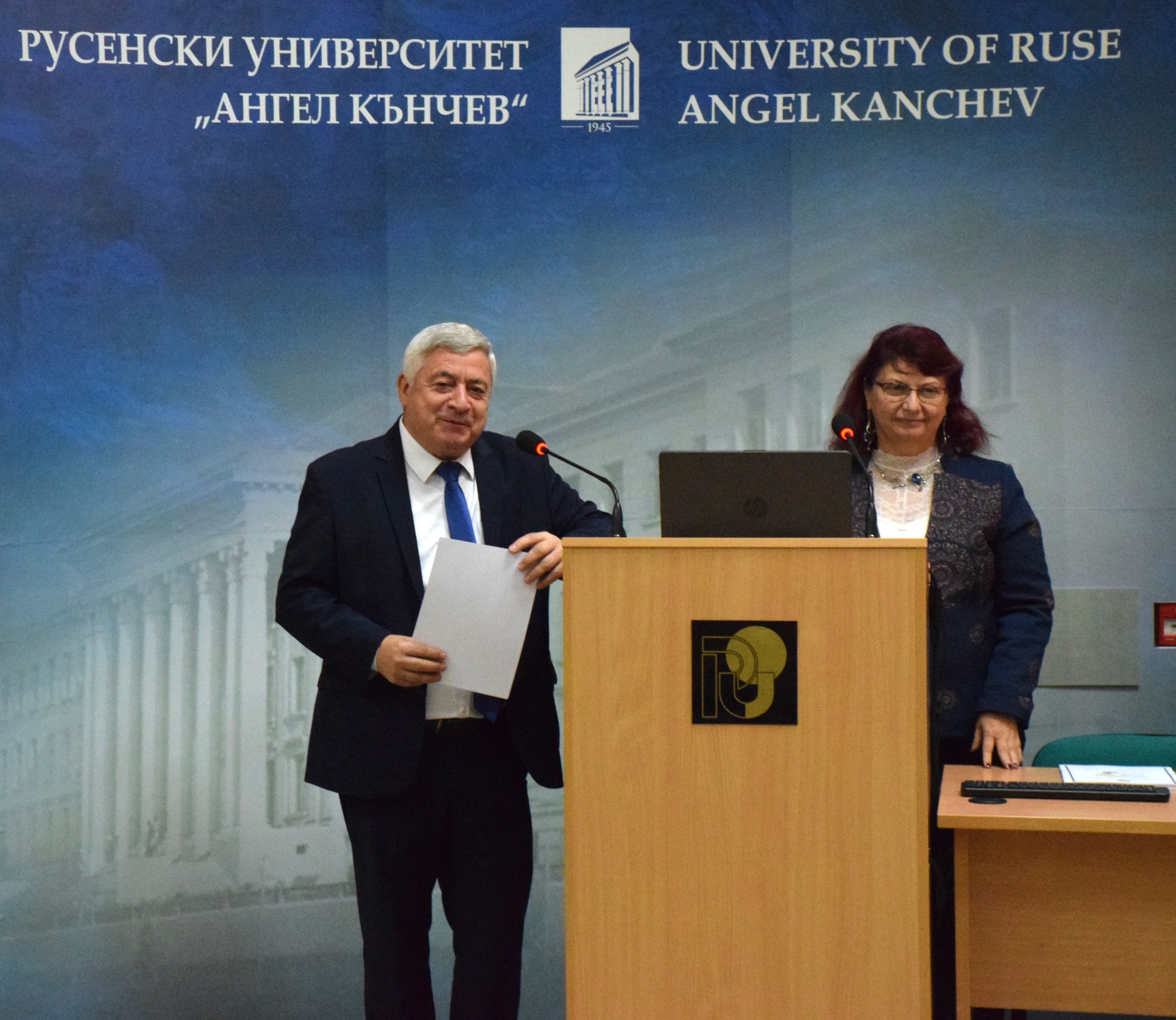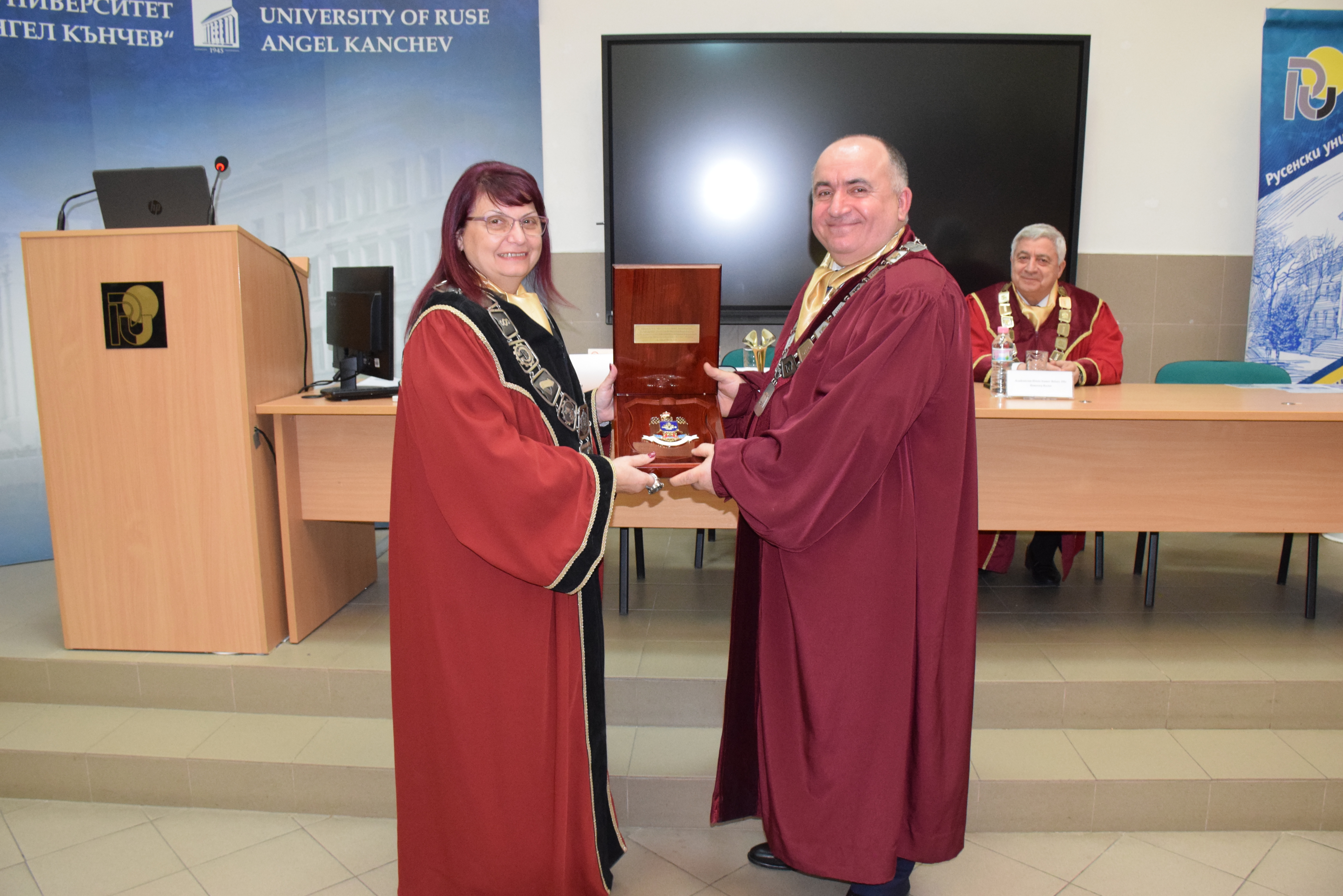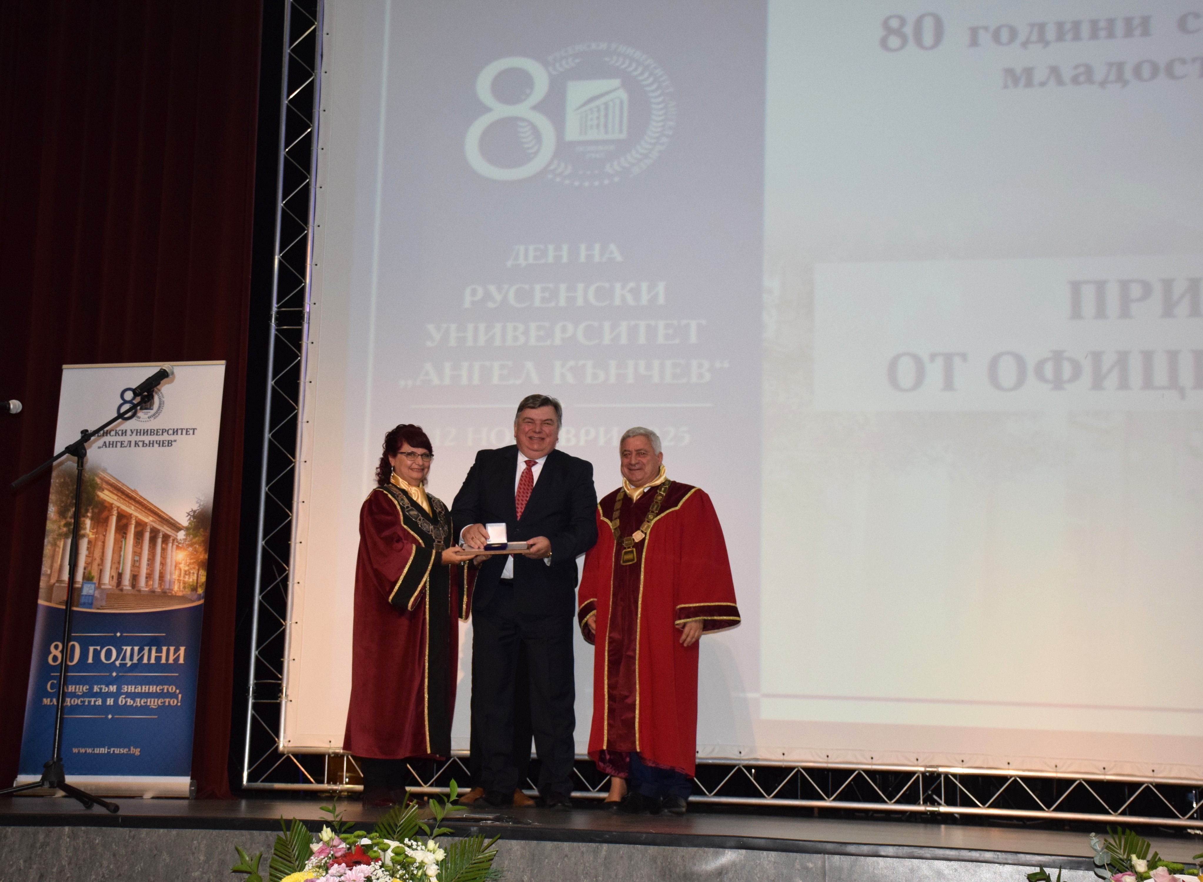 Guests at the ceremony included the Rector of the University of Ruse "Angel Kanchev", Assoc. Prof. Desislava Atanasova, PhD, Acad. Hristo Beloev, Honourary Rector and Chair of the University General Assembly, DscEng, Vice-Rectors Prof. Teodor Iliev, PhD and Assoc. Prof. Galina Ivanova, PhD.