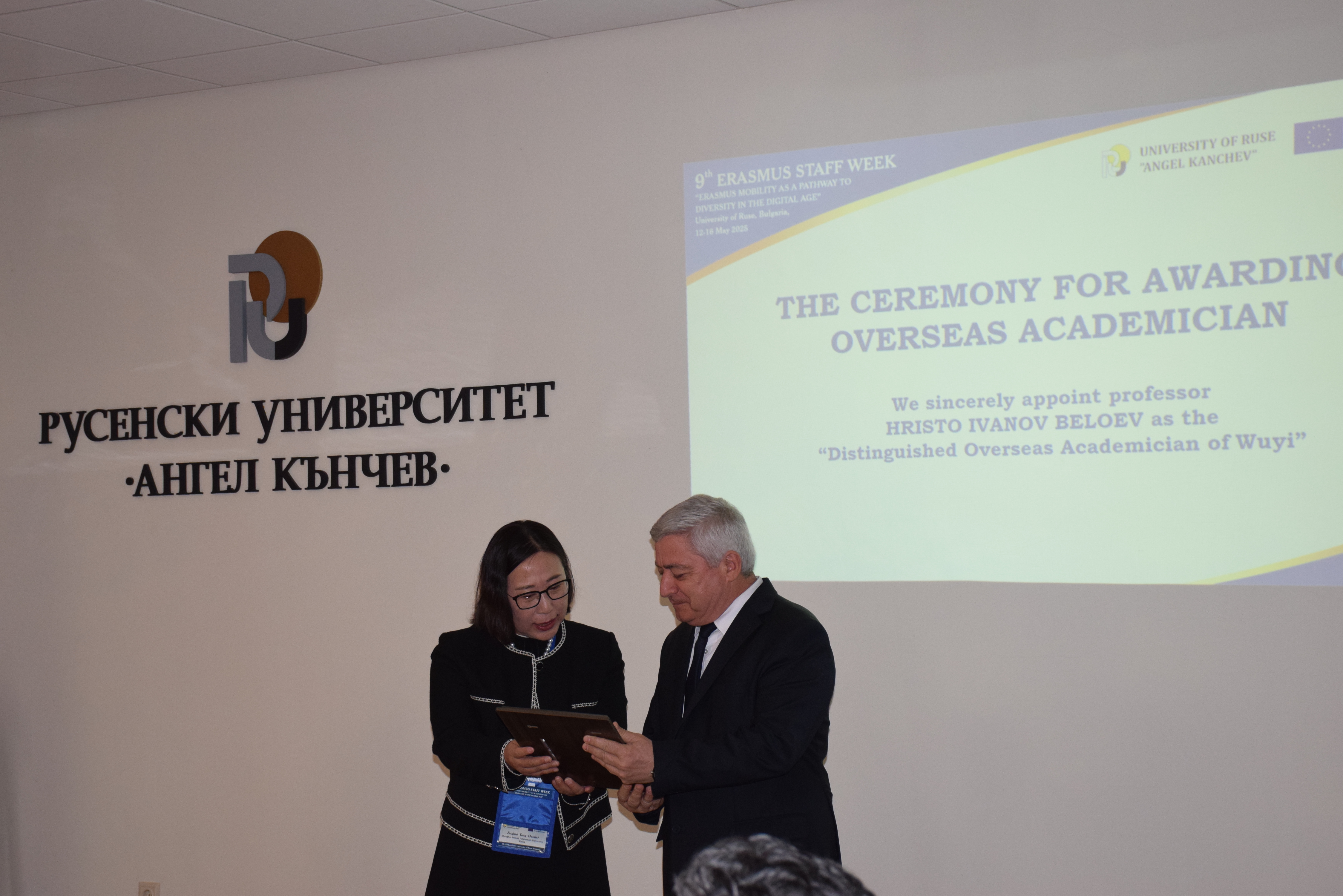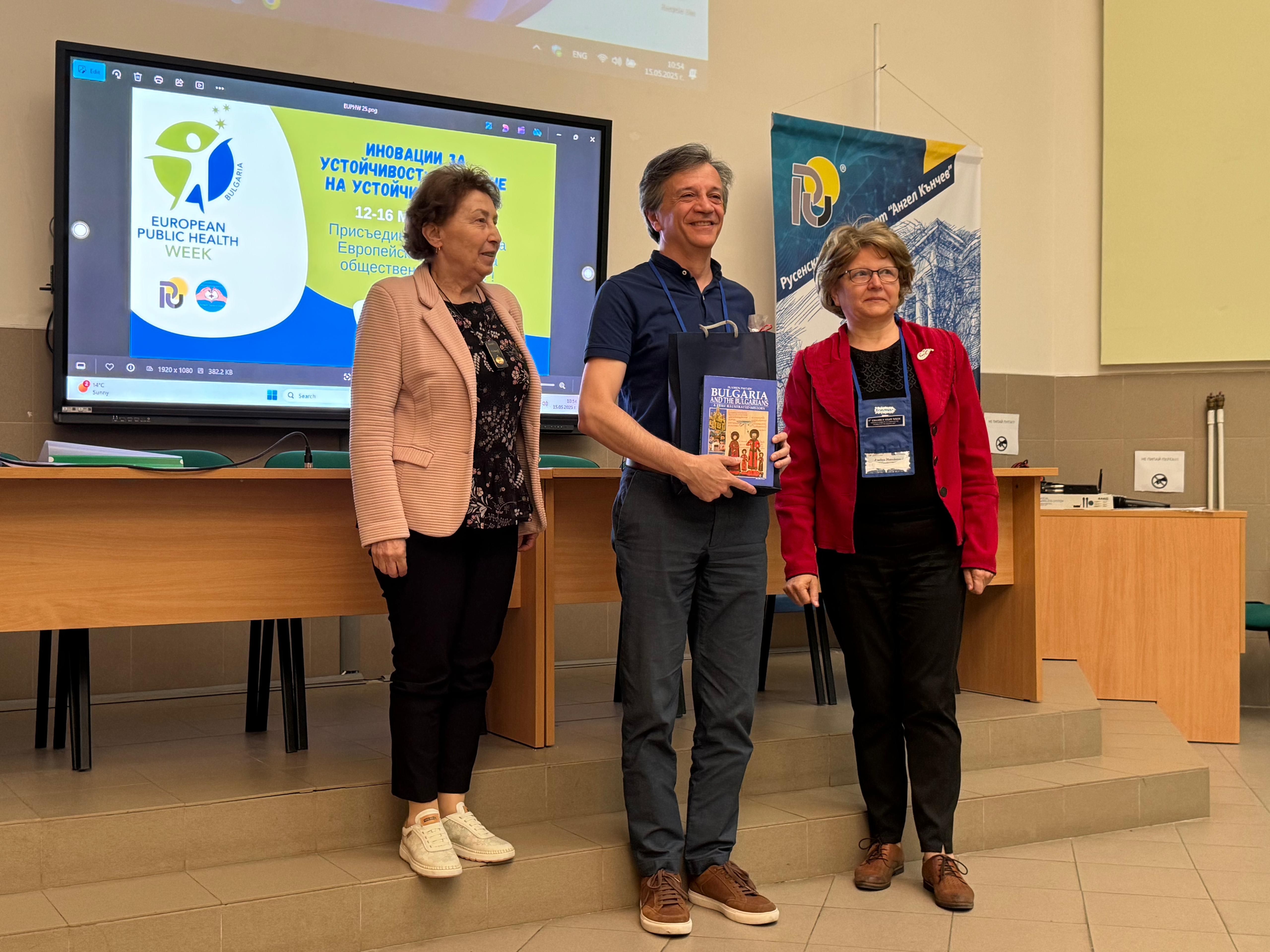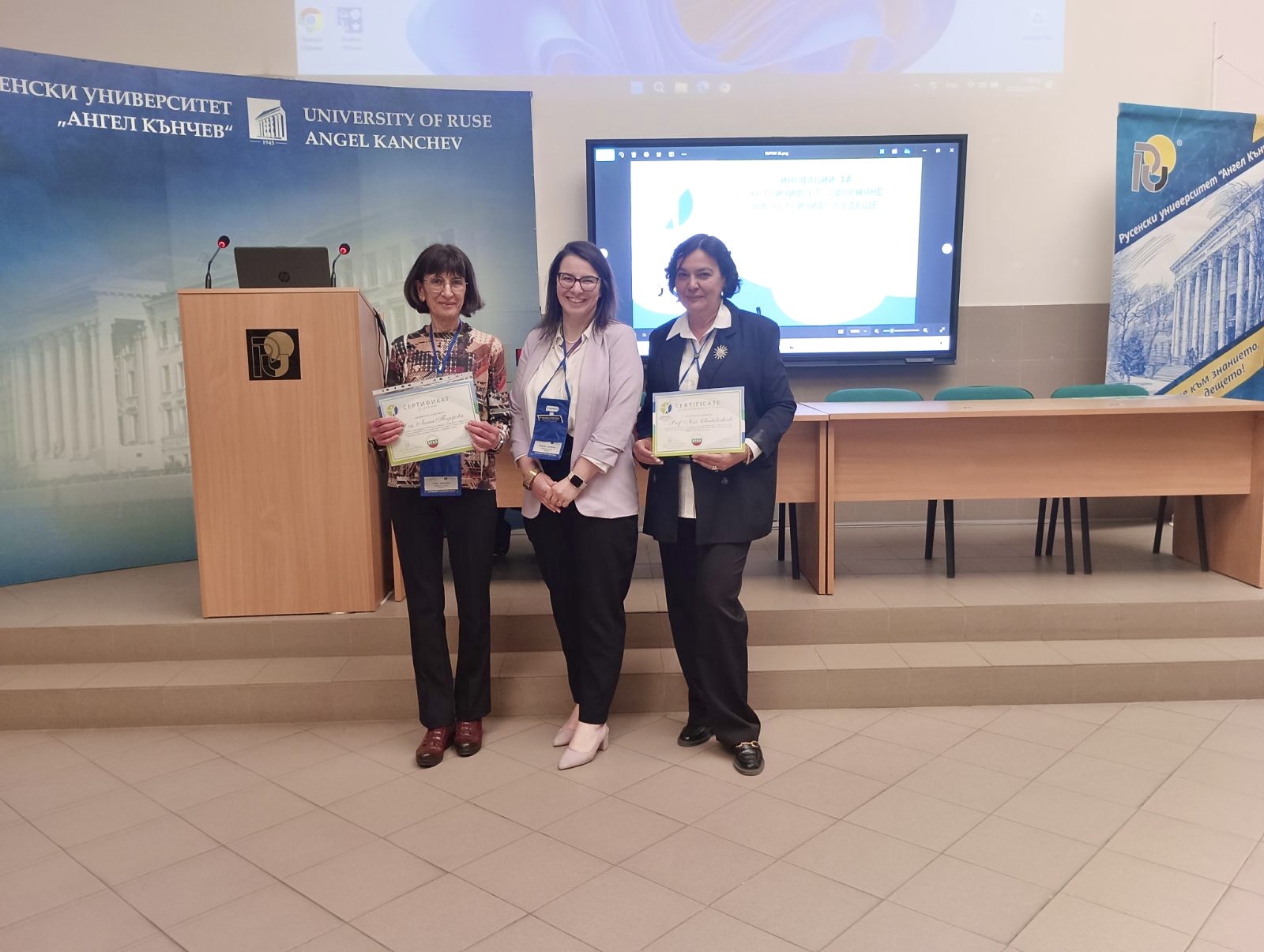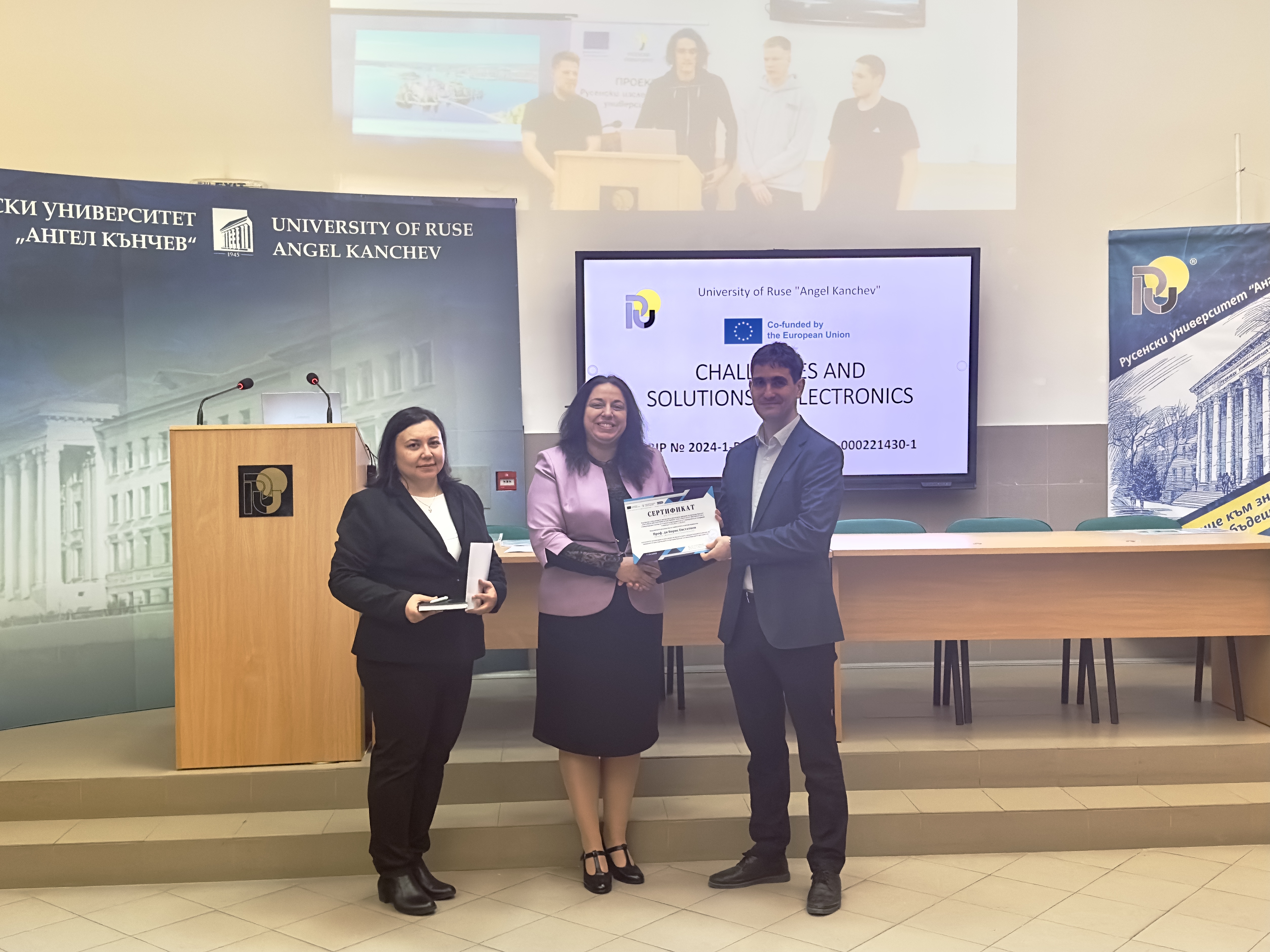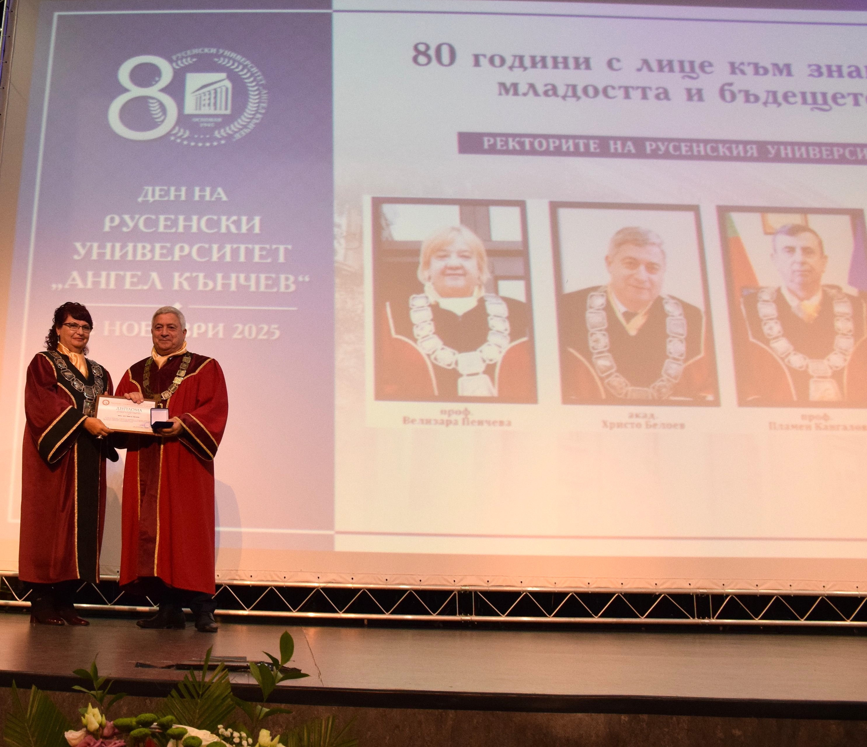 Guests at the ceremony included the Rector of the University of Ruse "Angel Kanchev", Assoc. Prof. Desislava Atanasova, PhD, Acad. Hristo Beloev, Honourary Rector and Chair of the University General Assembly, DscEng, Vice-Rectors Prof. Teodor Iliev, PhD and Assoc. Prof. Galina Ivanova, PhD.