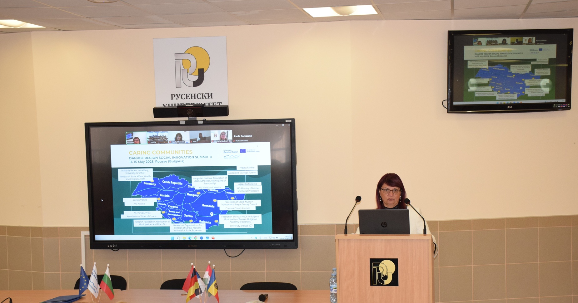The meeting was opened by the Rector of the University of Ruse, Assoc. Prof. Desislava Atanasova, PhD who welcomed the participants. Assoc. Prof. Atanasova, PhD emphasized that the third general meeting of the project partners, hosted by the University of Ruse, was dedicated to important theoretical and practical issues related to the construction of three demonstrators in the Danube River basin.