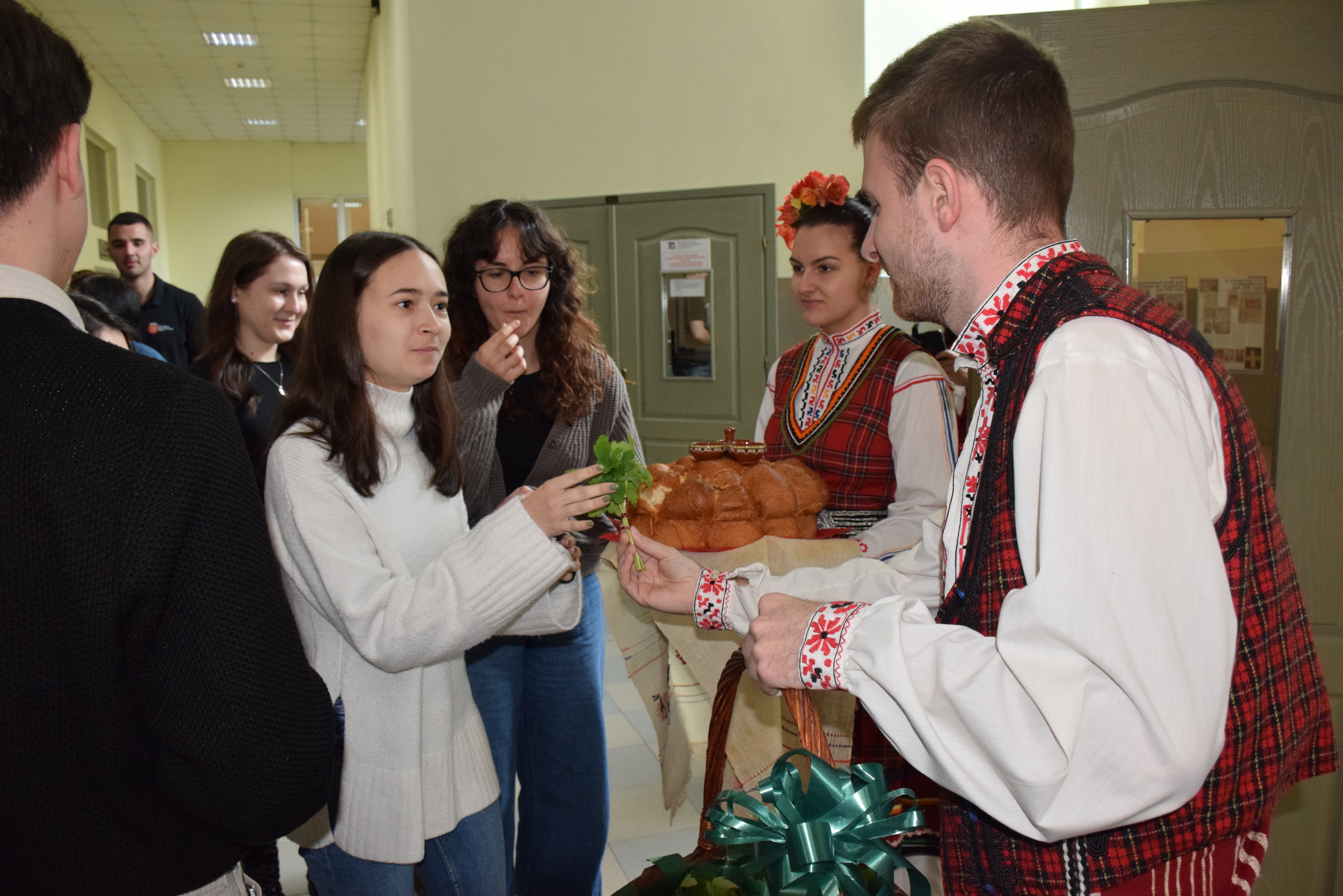 Assoc. Prof. Emilia Nedkova, PhD presented Bulgarian Christmas traditions, and foreign students participated with a musical programme and dances, as well as by performing the traditional ritual of "survakane" for the university management.