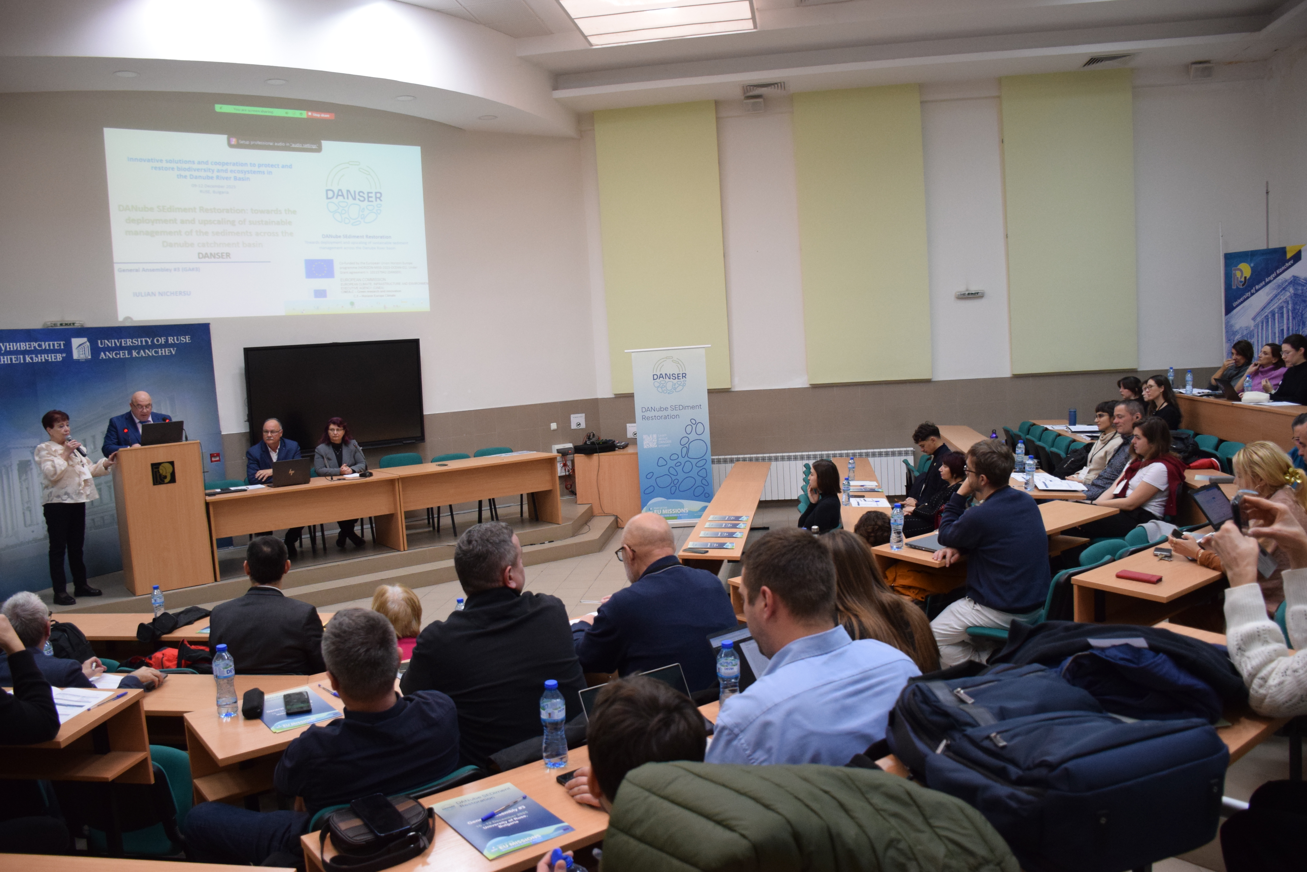 Today, December 10th, 2025, the Third General Assembly of the DANSER project - DANube SEdiment Restoration, funded by the HORIZON-MISS-2023-OCEAN-01 programme, was opened in room 2.101 at the University of Ruse.