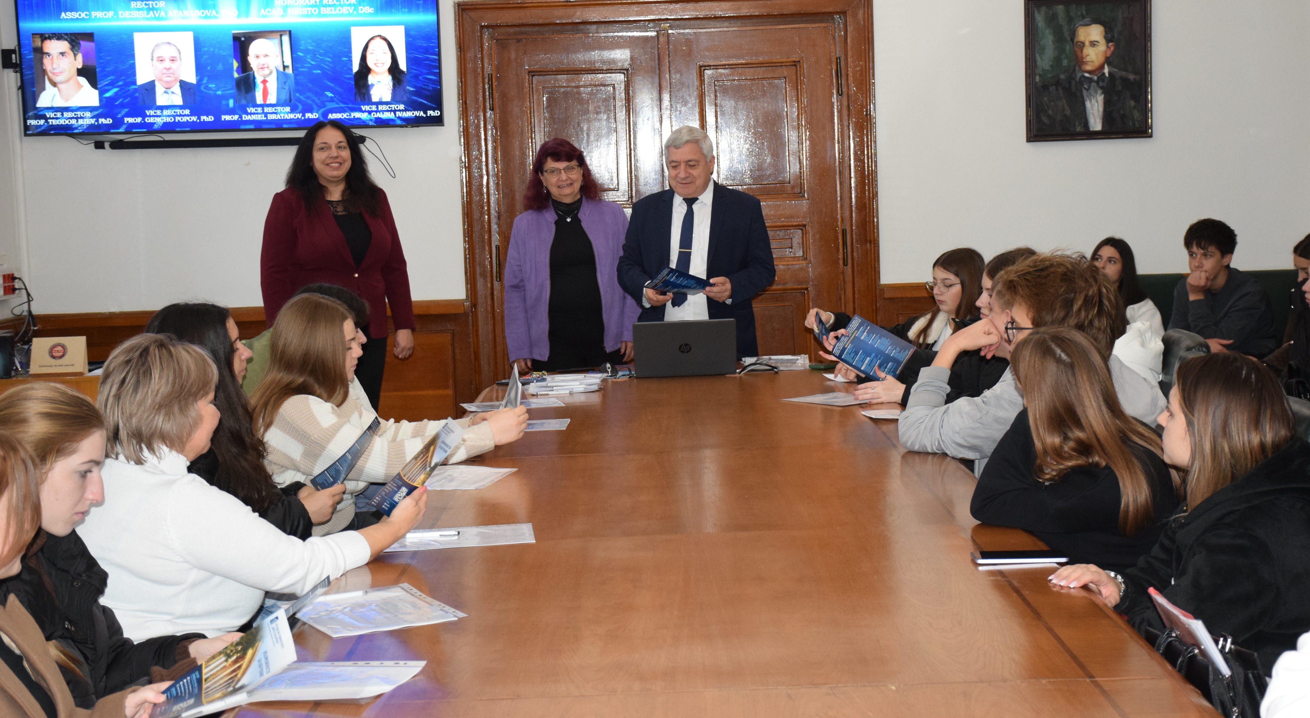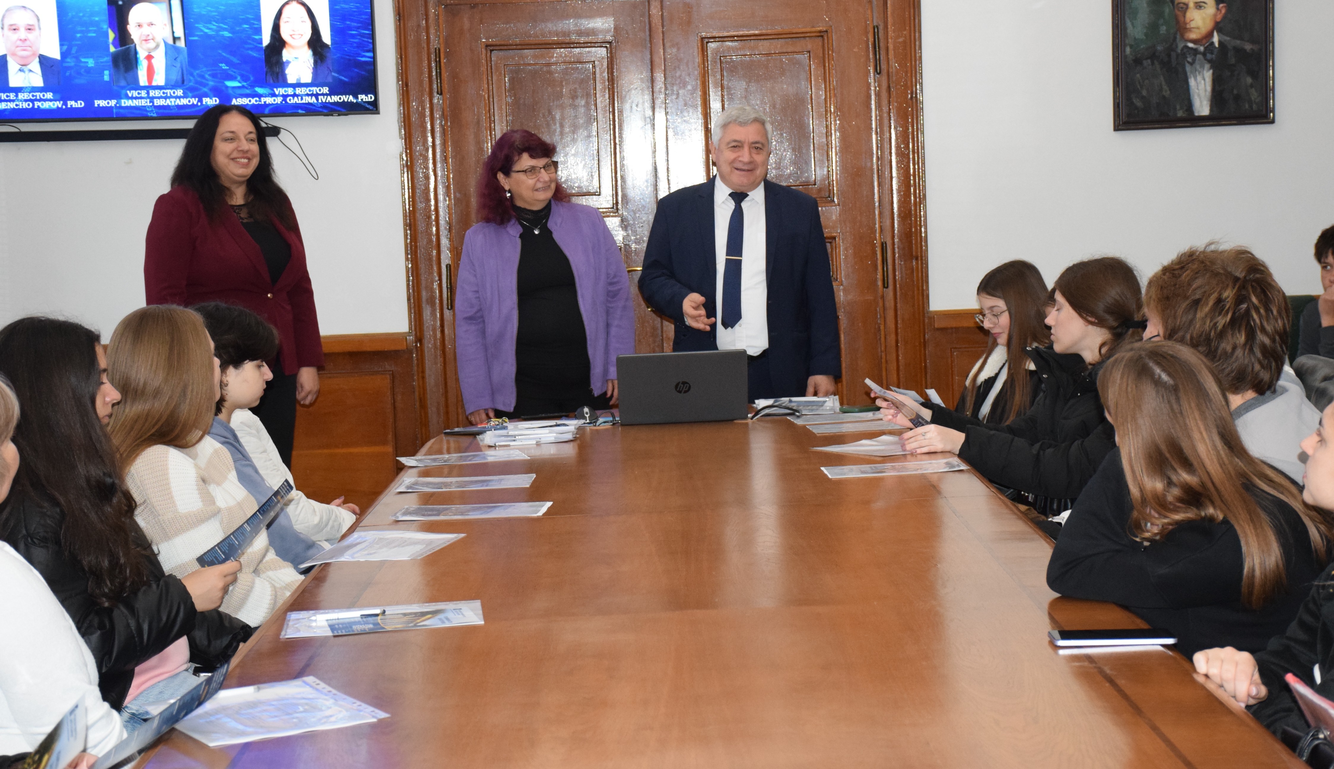 The guests were welcomed by the Vice-Rectors Professor Teodor Iliev, PhD, Professor Gencho Popov, PhD and Associate Professor Galina Ivanova, PhD.