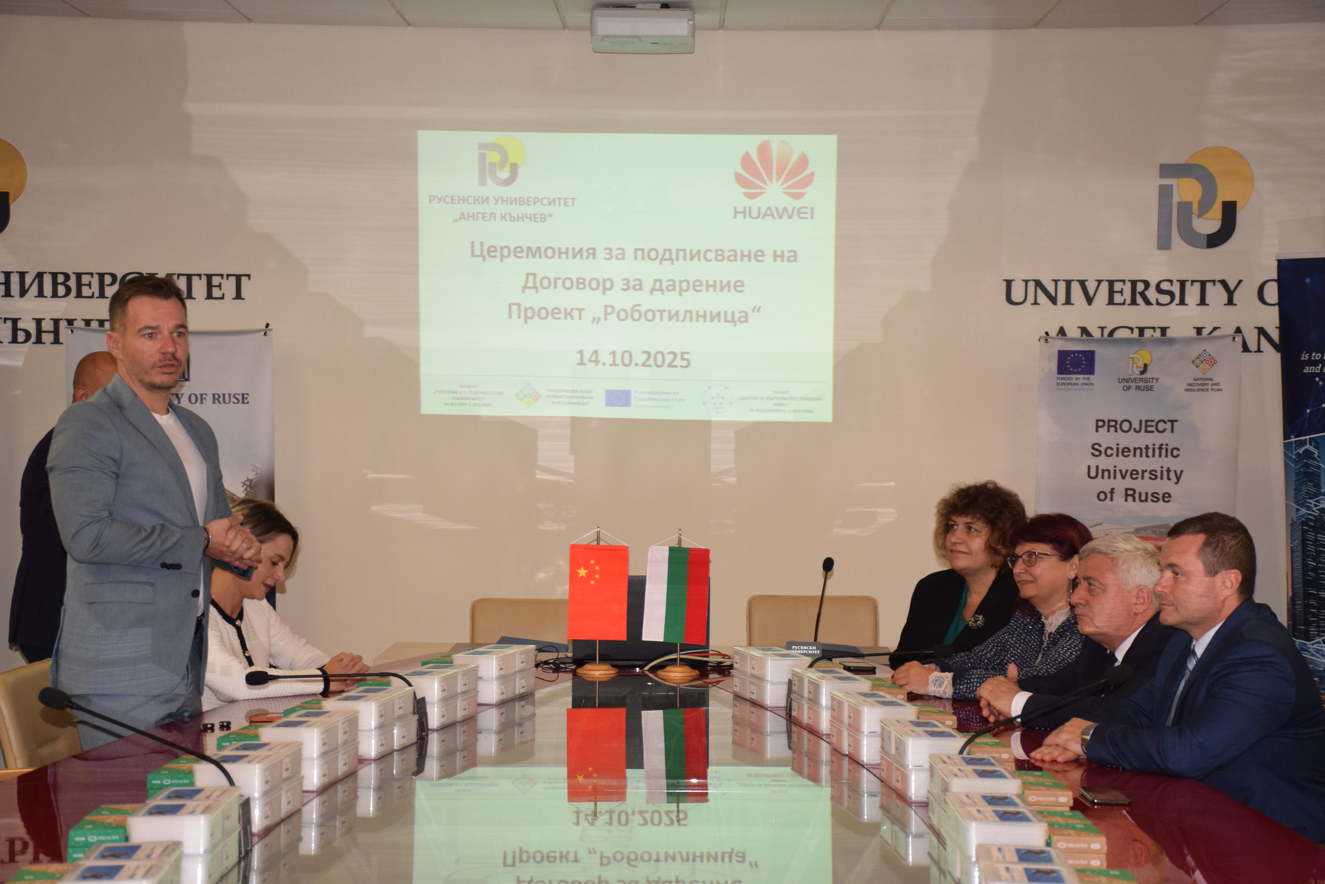 The University of Ruse and Huawei Technologies Bulgaria have already signed memorandums of cooperation and donation contracts. It is thanks to the latter of these agreements that two training courses on block-based programming of microcontrollers and robots are currently being held at the university with teachers from more than 20 schools on the territory of the Ruse Municipality.