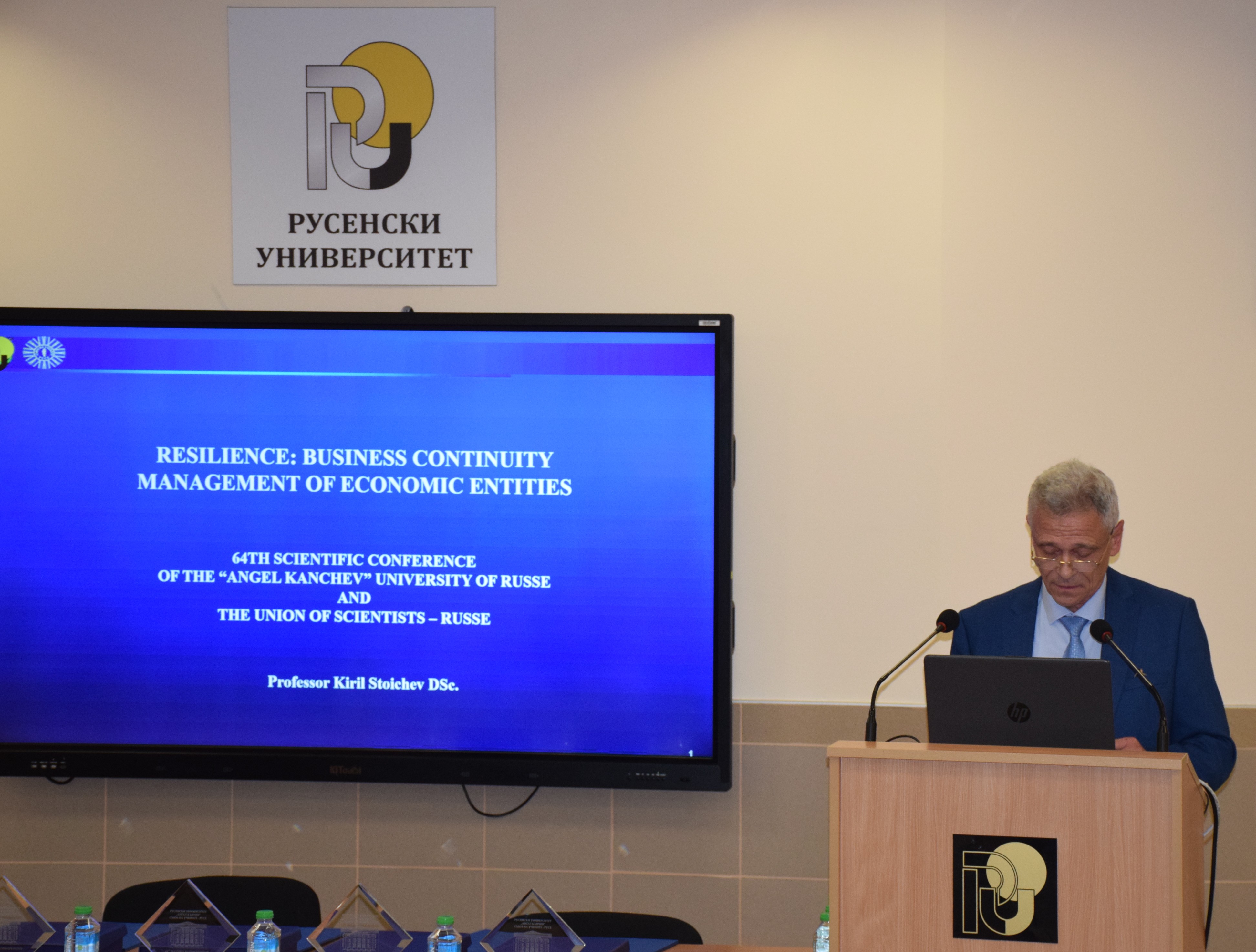 After the ceremonial awarding, the honorary doctor was given the floor for an academic speech. He expressed gratitude to the academic community of the University of Ruse for the recognition and high appreciation for his work and that of his colleagues in it. He expressed his confidence that the excellent cooperation between the University of Ruse and the Naval Academy "Mircea cel Batran", Constance, Romania will continue in the future.