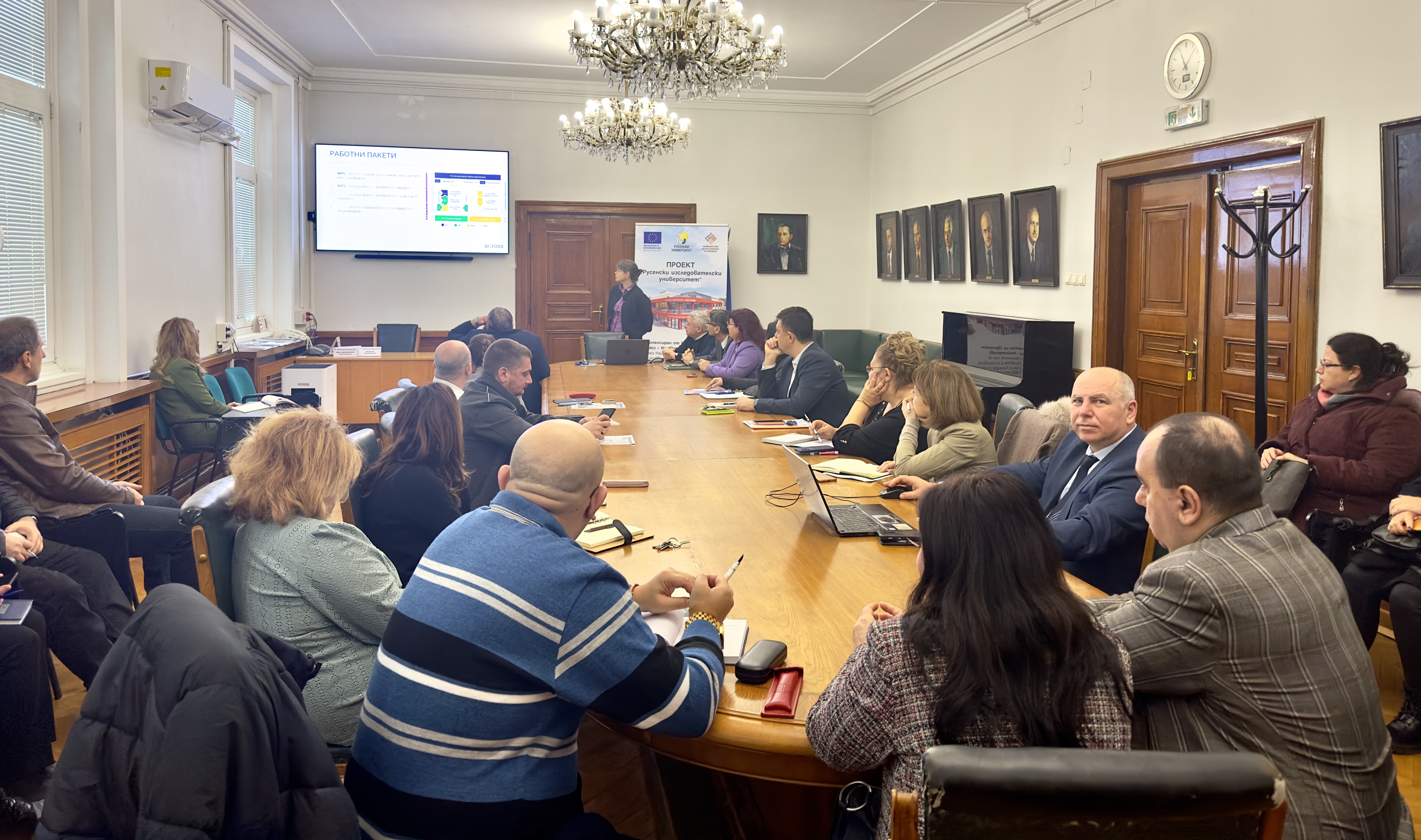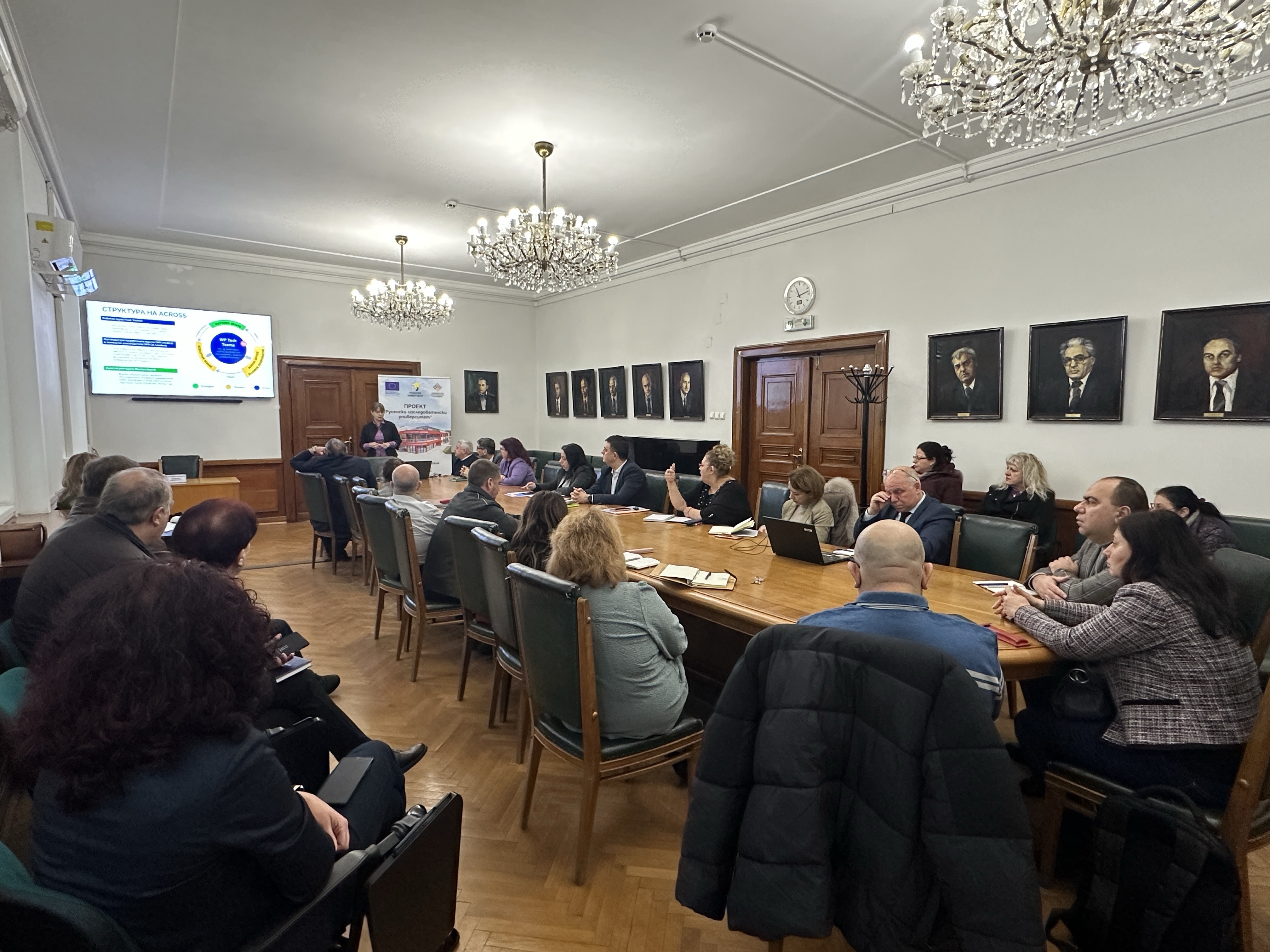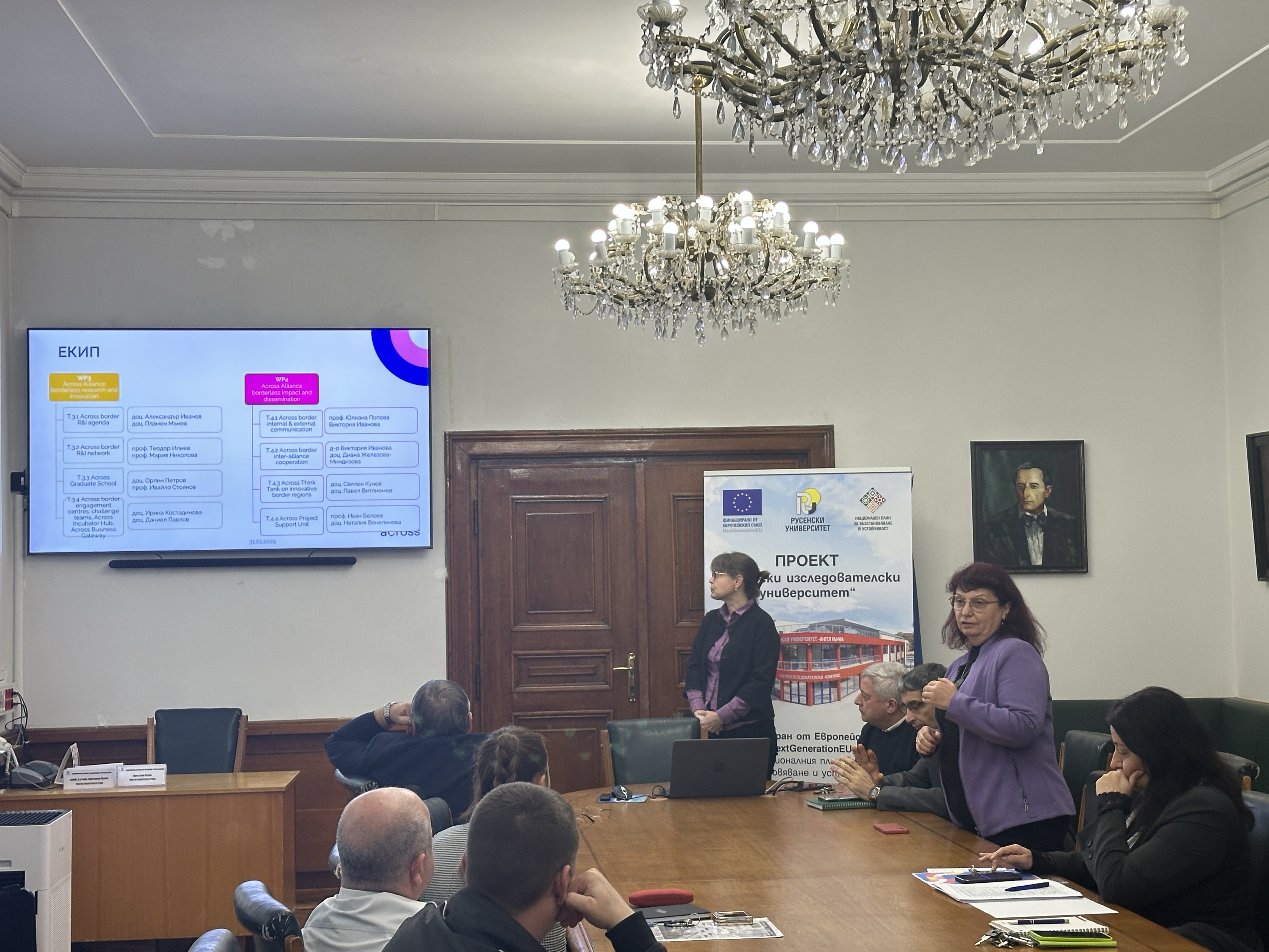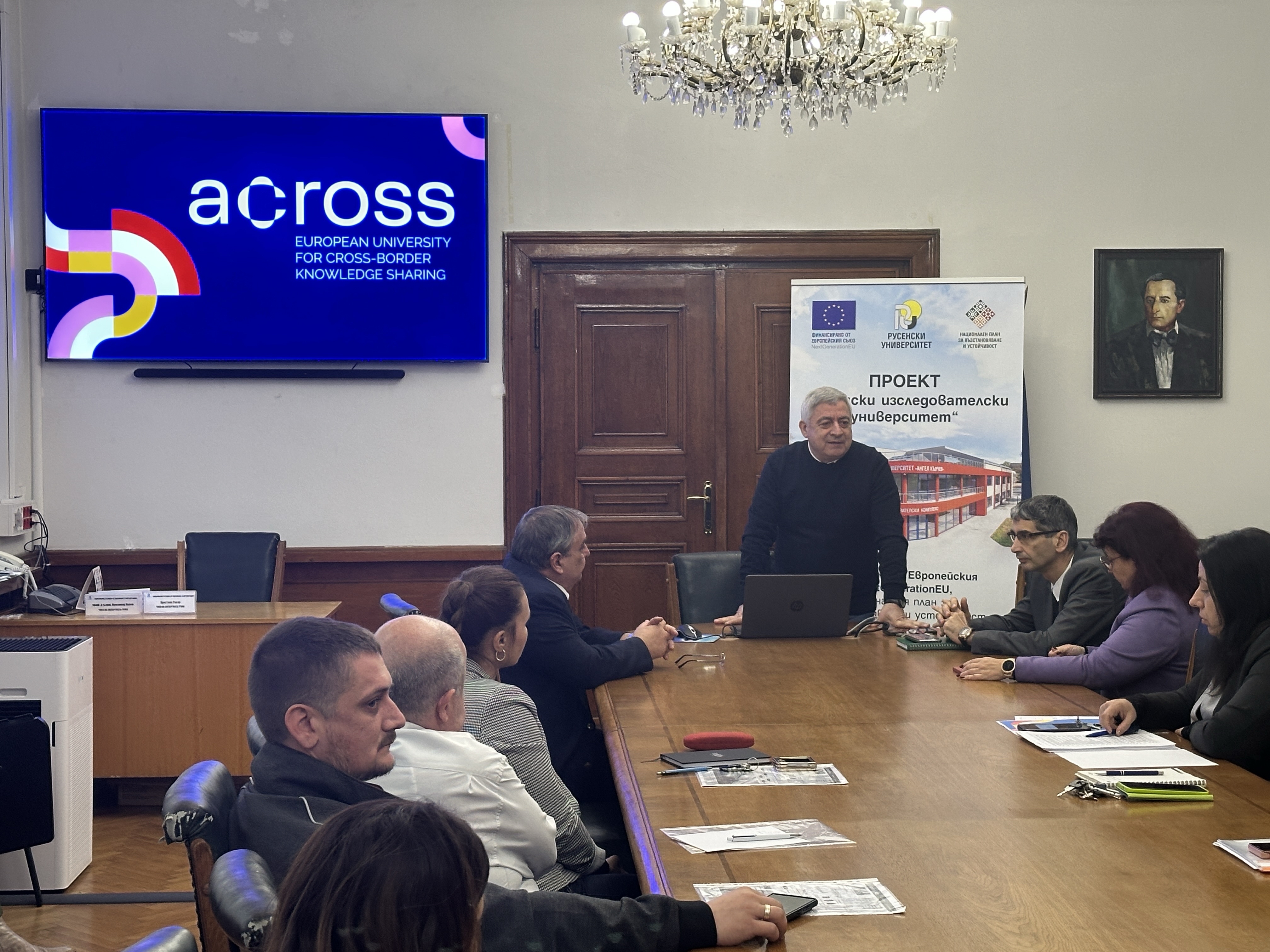 Today, January 31st , 2025, an informational meeting of the team involved in the work program under the ACROSS-European University for Cross-border Knowledge Sharing project was held in a meeting room of the Rectorate of the University of Ruse.