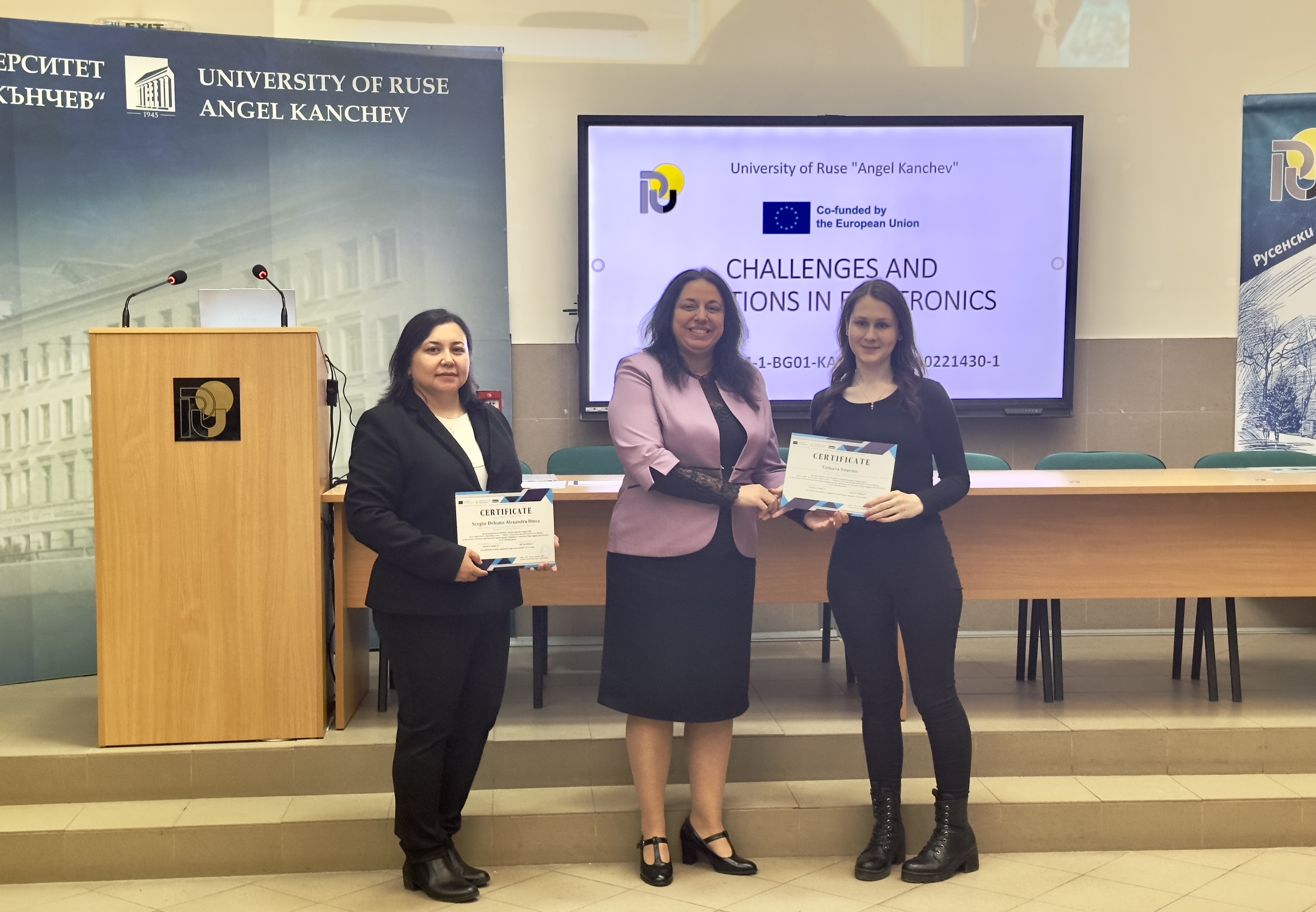 During the ceremony, Assoc. Prof. Desislava Atanasova, PhD and Acad. Hristo Beloev, DscEng presented certificates for successful completion of a preparatory course in Bulgarian language and specialized training to foreign students.