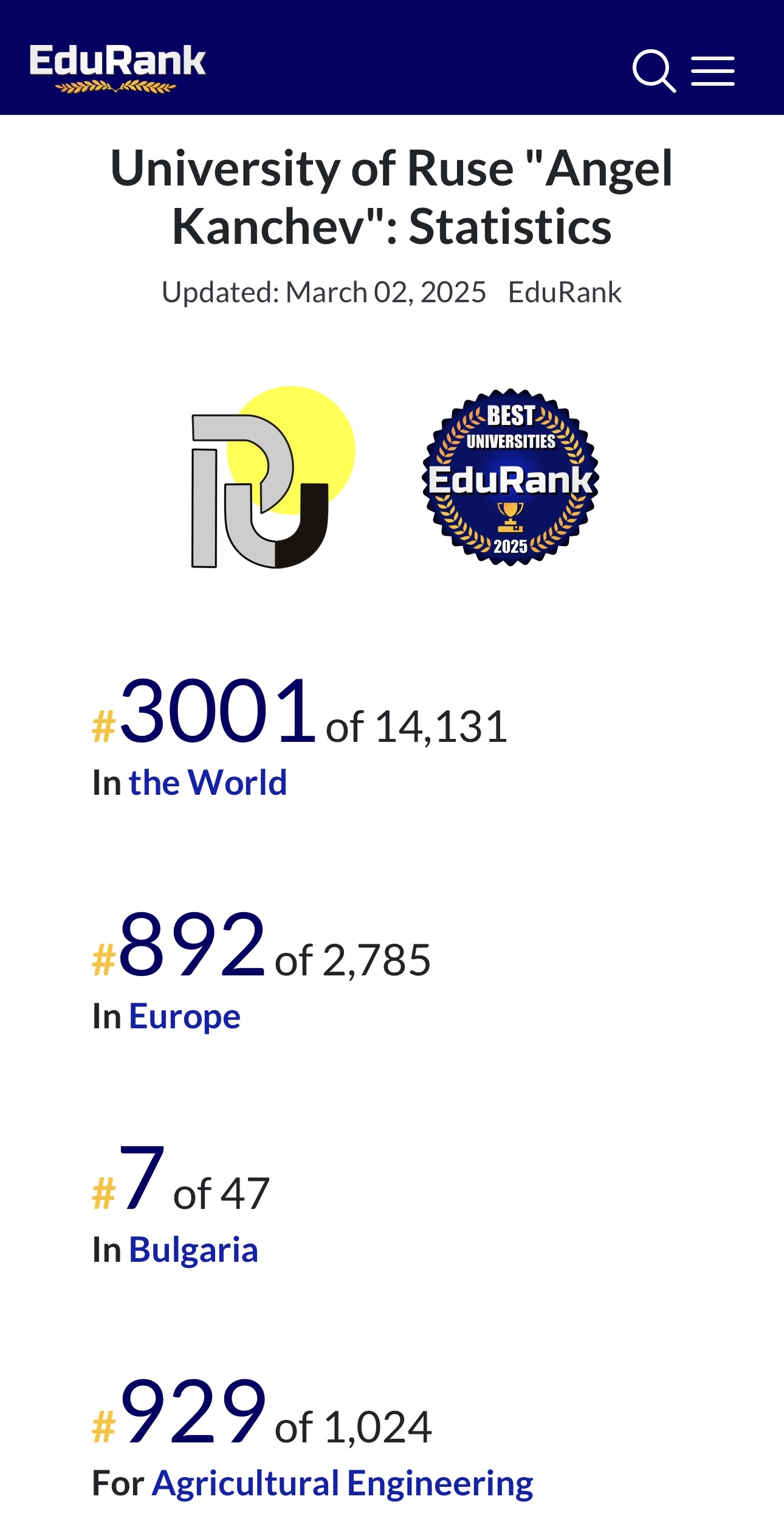 These results motivate the entire academic community of the University of Ruse to continue with its high achievements and maintain its established positions in the educational system of the country.