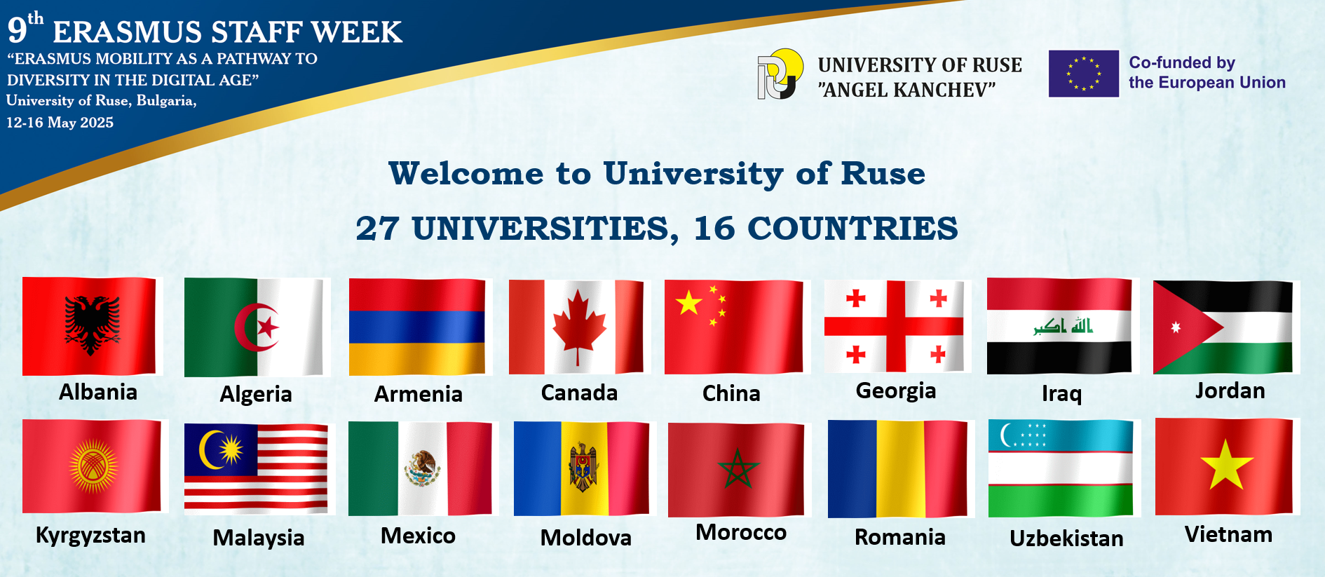 Applications are accepted at the Erasmus office (International Department) room 1.313 until 13th March, 2025. They can also be sent scanned to mbogdanova@uni-ruse.bg.