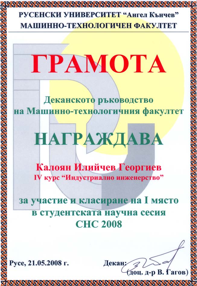 Номинацията на гл. ас. д-р Георгиев бе направена от проф. д-р Юлиана Попова и официално подкрепена от Ректорското ръководство в лицето на Чл.-кор. проф. дтн Христо Белоев.
