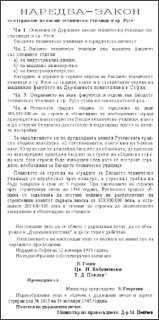 фигурира решението на Министерския съвет. Наредбата-закон за откриване